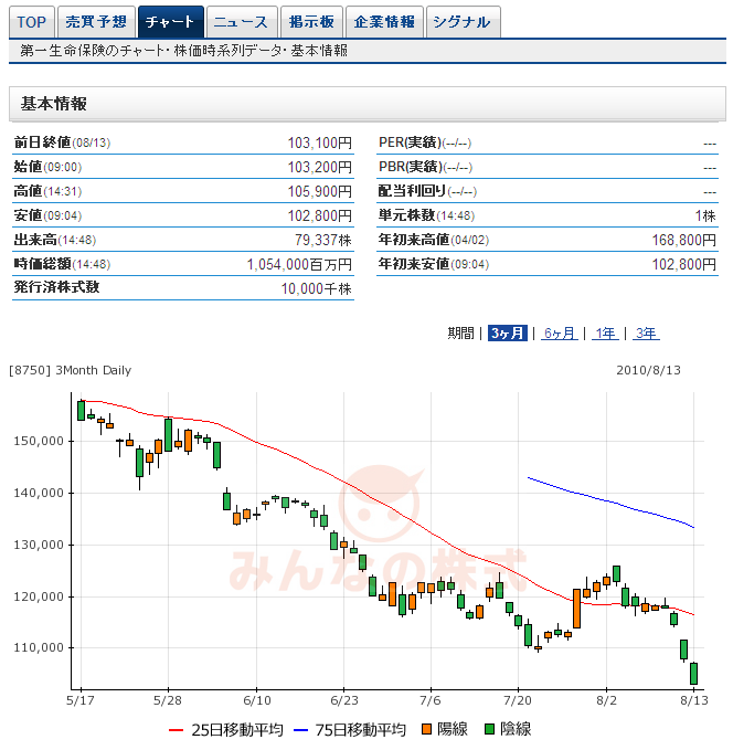 8750:第一生命の火曜日はどうなるでしょうか???