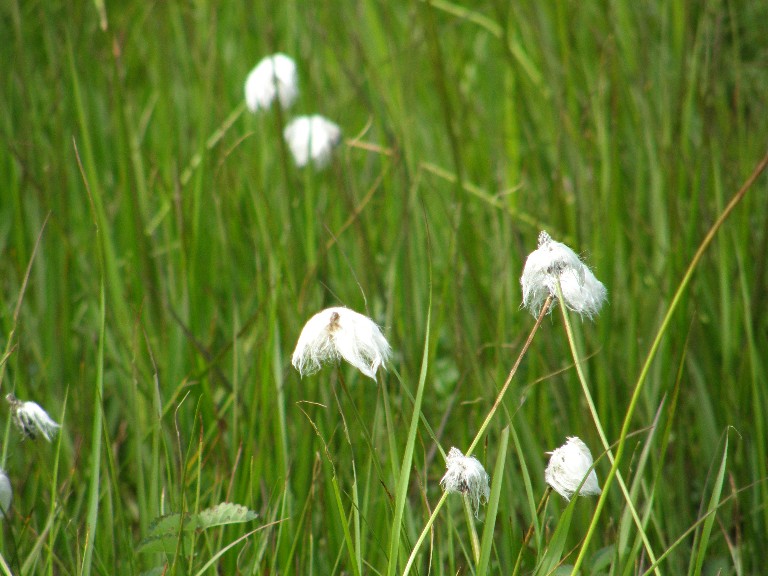 左がワレモコウ(ばら科)、右がワタスゲ(かやつりぐさ科)