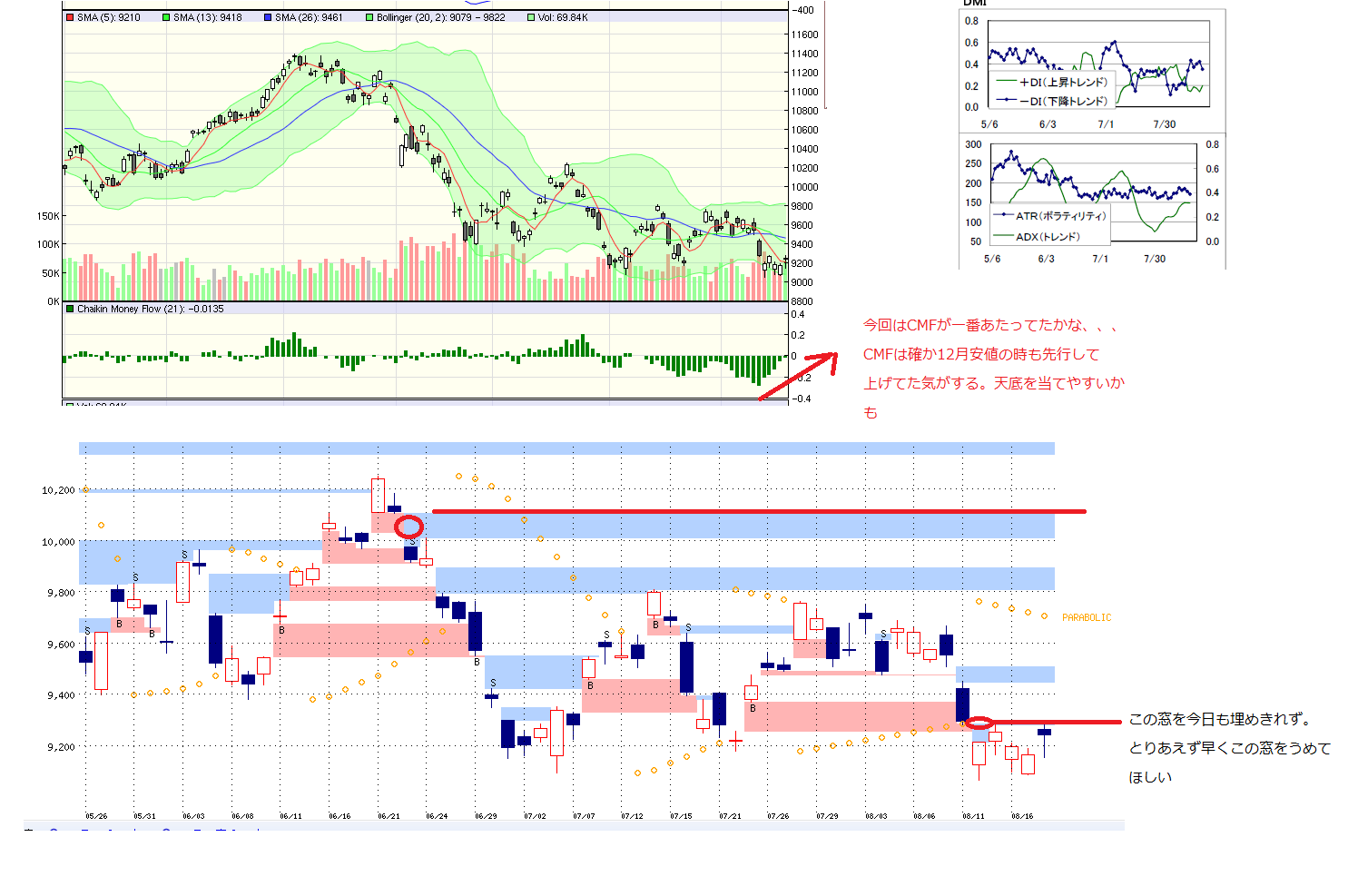 9260のレッジは今日埋めたので、次は9360-9490をうめられるかどうか。うめたとしても9530-9540の積みあがり、ここが上値抵抗になりそう。下値不安が消えるのは9530-9540をこえてからかな、、、