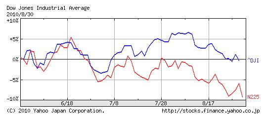 経済情勢好転で株価も上昇というのが本来の流れだと理解していますが、比較グラフで見て分かるように、ここまで下げたのは民主党政権の責任に他ならないでしょう。