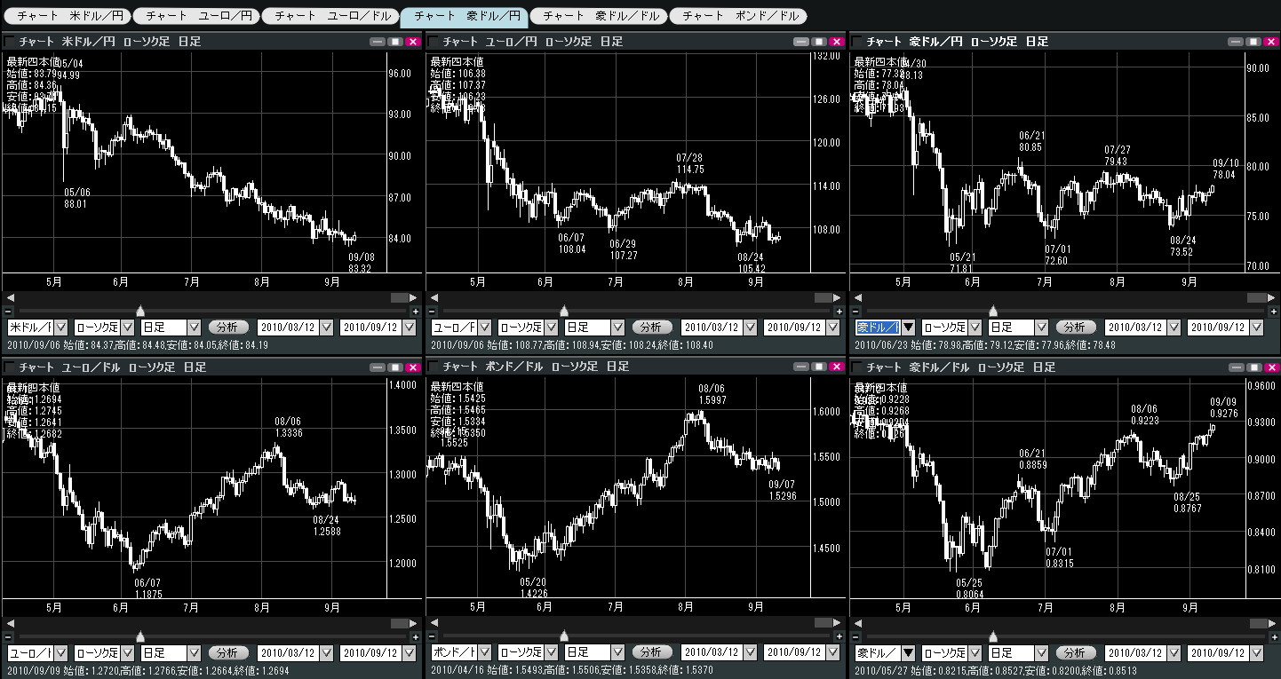 米㌦一直線に下だけど、豪ドルが強いねぇ