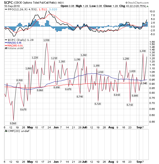日足、週足ともCPC(PUT/CALLレシオ)が異常に高騰している。つまりPUT買いが増えている。