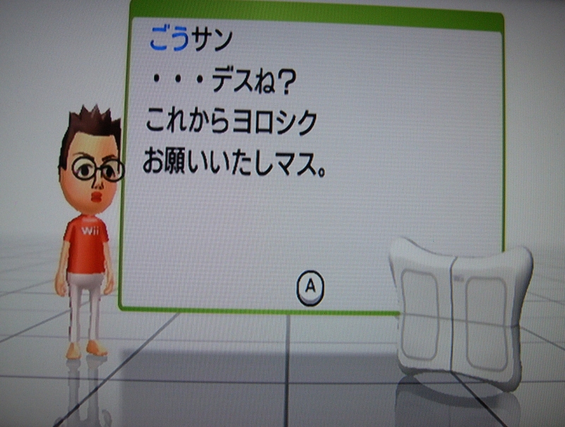 郷吉似てますかぁ~♪miiは自分で最初に作るでし♪wiiスポーツや初めてのwiiでも操作して遊ぶので楽しい♪