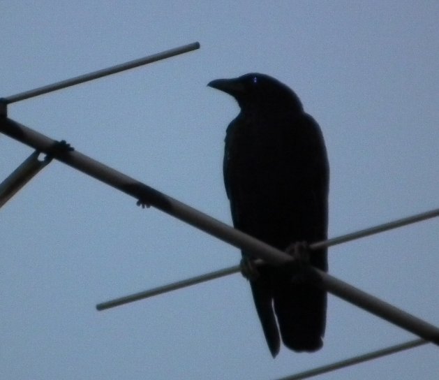 夕方の散歩に出ましたら電線にカラスがたくさん並んで羽を休めています