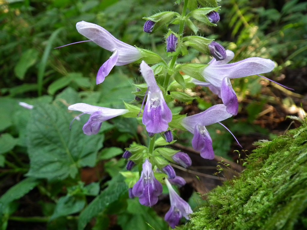 薄暗い森のなかで咲き誇ってますが、花のカタチが面白いですね
