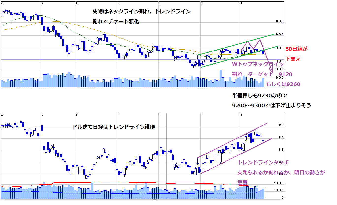 10/20 本日のチャート②ドル建て日経はトレンド維持