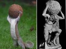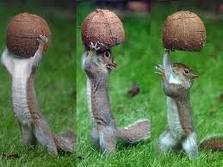 きゃぁ~~ 栗鼠が 栗を クリの 近くの 穴に 押し込んでいる (/_\)