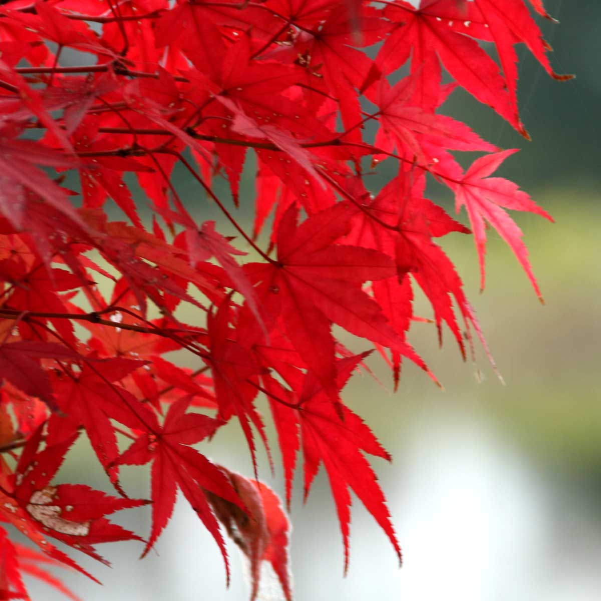 右の写真のもみじは、境内にある大沢池を背景に綺麗な色を見せてくれていました。