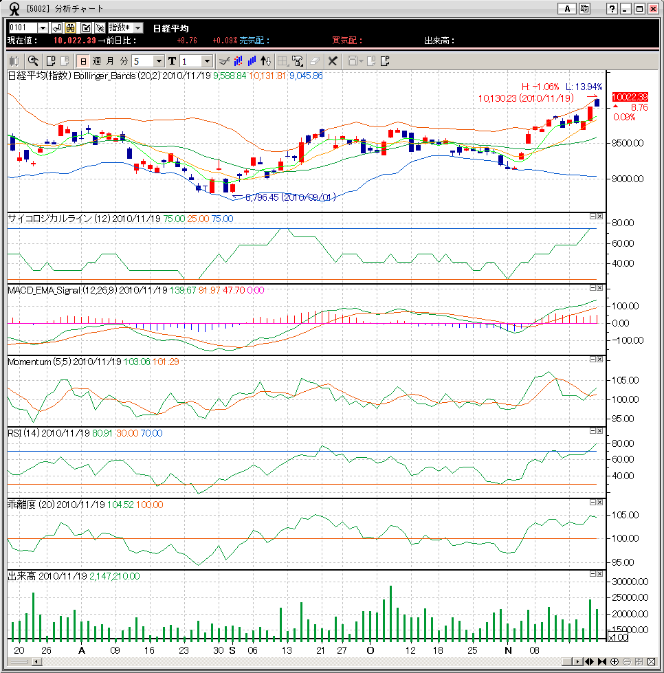 騰落レシオ25:101.17(88.78) RSI14(日足)81近辺(62近辺) サイコロジカル12:75(58)