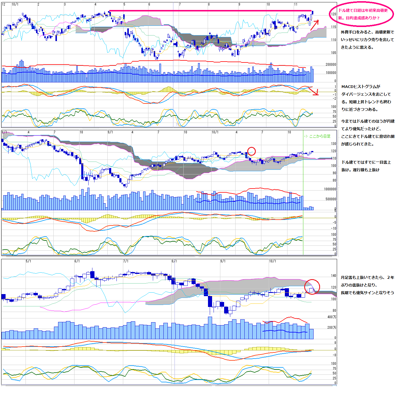 テクニカル上では売りポイント達成したので売りたいところなのですが、