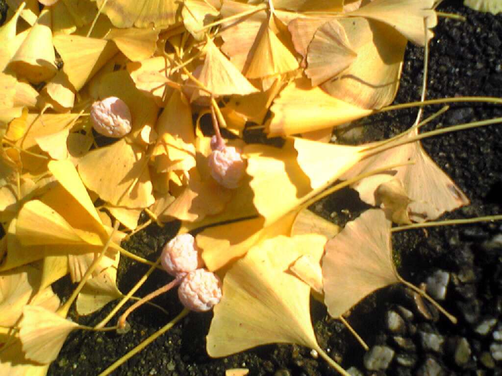 熱田神宮のイチョウとぎんなんです。季節の香りがします。朝からこれだけ落ちたようです。