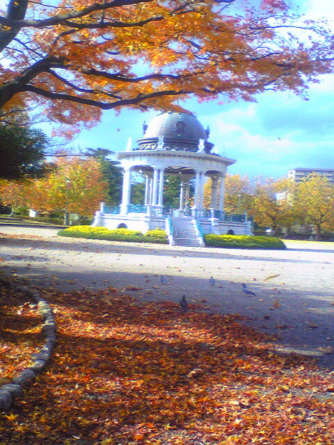 鶴舞公園の音楽堂の紅葉とバラ