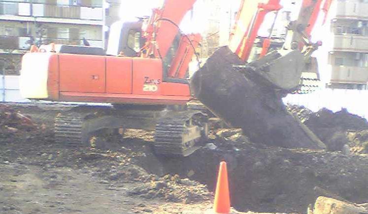 5m以上の大きな重油タンクが地中から出てきました。30年前に埋めたようです。中は空ですので、大きなラグビーボールをパスしタッチダウン。ショベルカーの技です。偶然目の前で遭遇。昔は目の前のショベルカーが15kmでゆっくりとカーブを曲がる時、滑り落ちるのをスローモーションでみたり、斉藤佑樹君ではないが、何か持っています。悪運でしょうか?