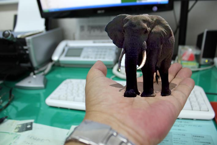 きりんちゃんは人目について大変ですが、手乗り象は人目につかないみたいで