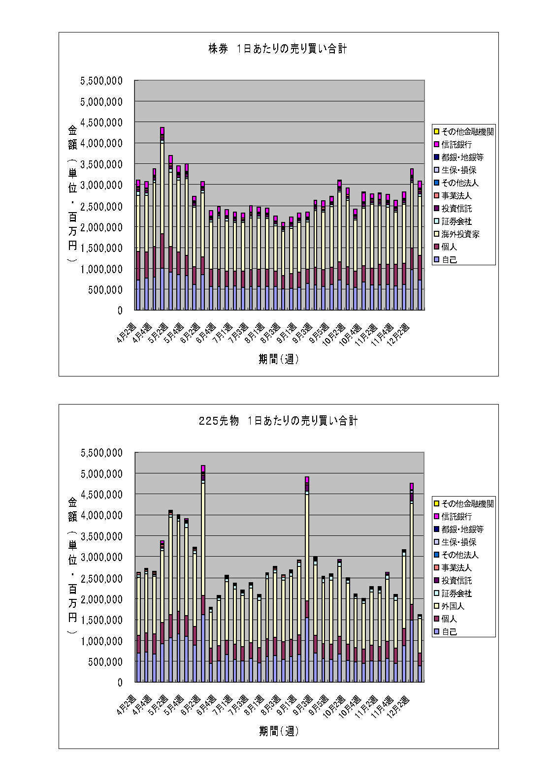 株券に関しては良い感じに売買金額が回復しましたが、先物に関しては今年一番の低水準と思われます。