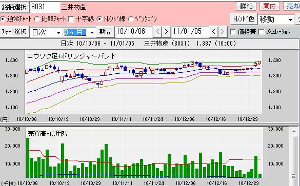 ボリンジャーの+2σを抜けた1381円で1000株の買い成立
