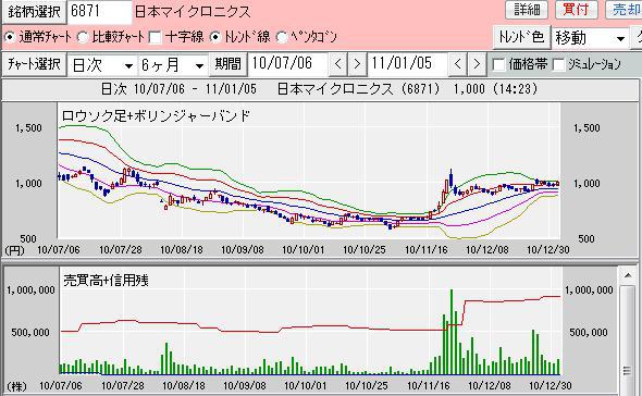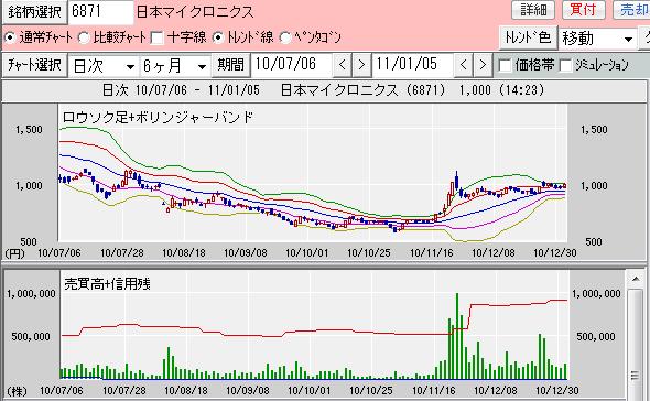 ボリンジャーの+2σを抜けた1008円で200株の買い成立