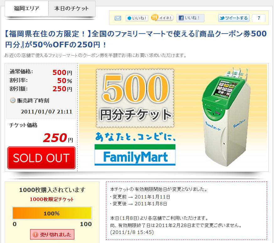 ファミマ500円チケット半額でゲーートwけらけらけら