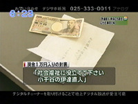 「社会福祉に役立てて下さい。 小千谷の伊達直人」 と書かれた便箋が添えられていました。