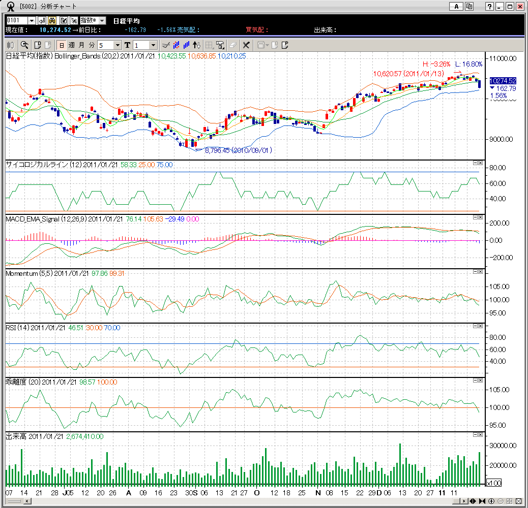 騰落レシオ25:110.33(134.16) RSI14(日足) 46近辺(57近辺) サイコロジカル12:58(58)
