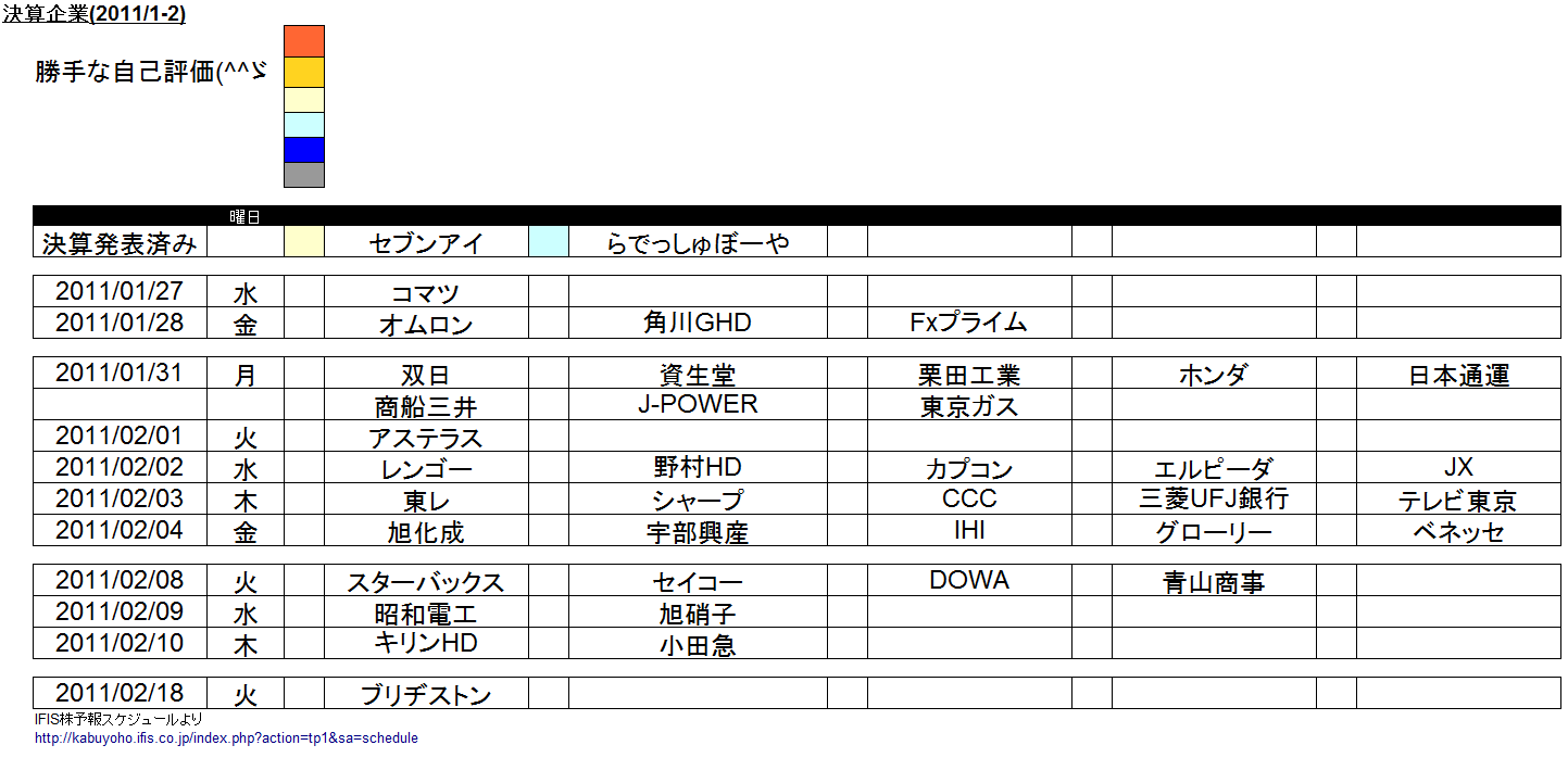 2011/01/26(水曜)●ボーイング(航空宇宙)、スターバックス(外食)