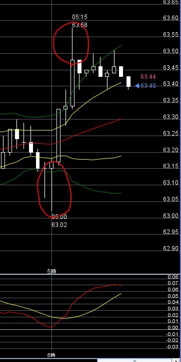 本日AM5:00あたりの NZ/円 の5分足チャートです