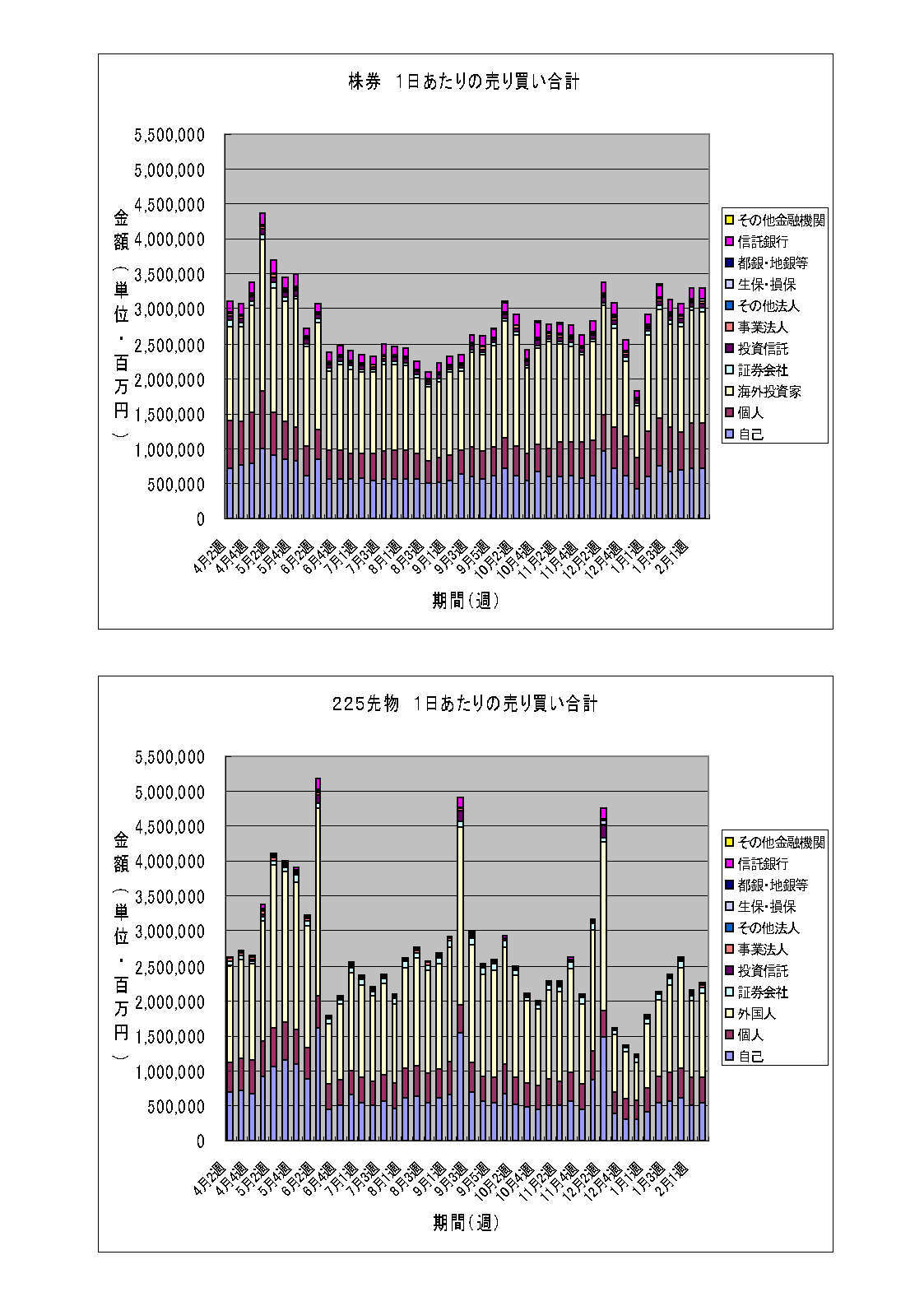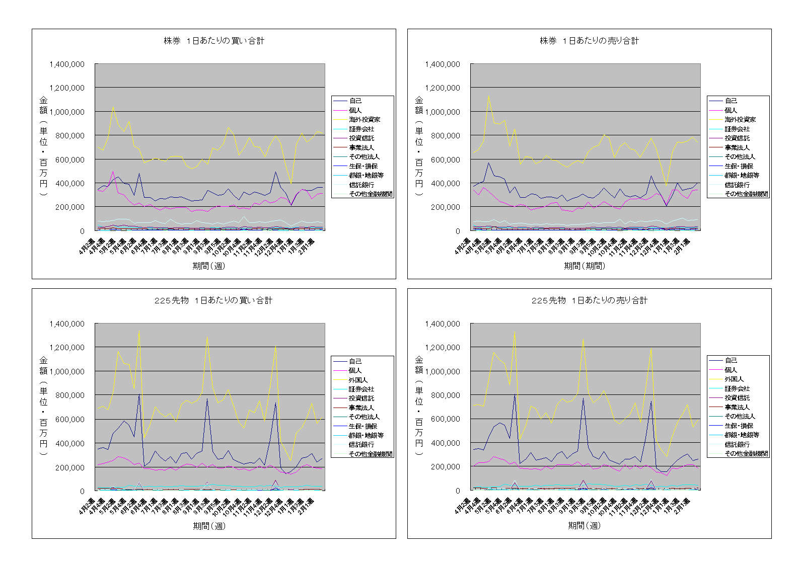 株券の売買金額はいい感じで水準を保っています。先物の売買金額はやや戻しました。