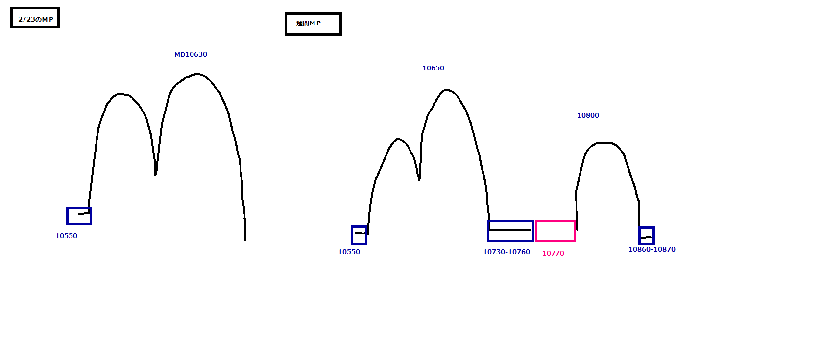 ドル建て50MA,13週MA,フィボナッチ、窓、SQ値、MPターゲット等確認して下値めど決めてください。