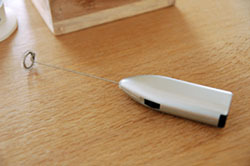 (2) 「泡だて器」でミルクを泡立てる(上のほうが泡立つ)
