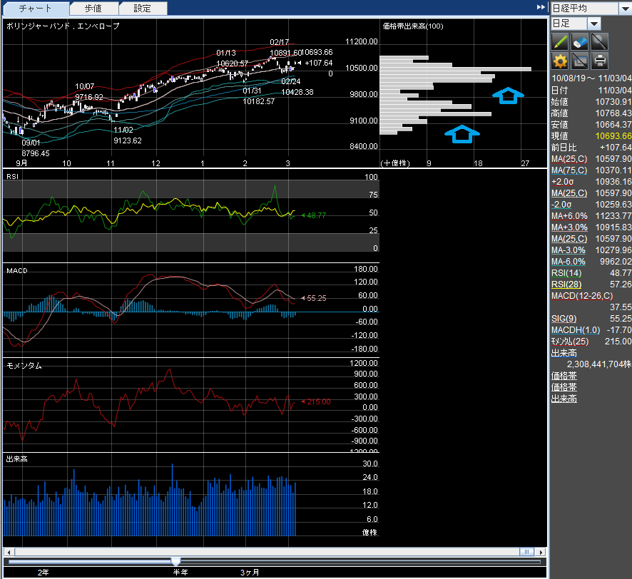 ①日経平均価格帯別出来高より