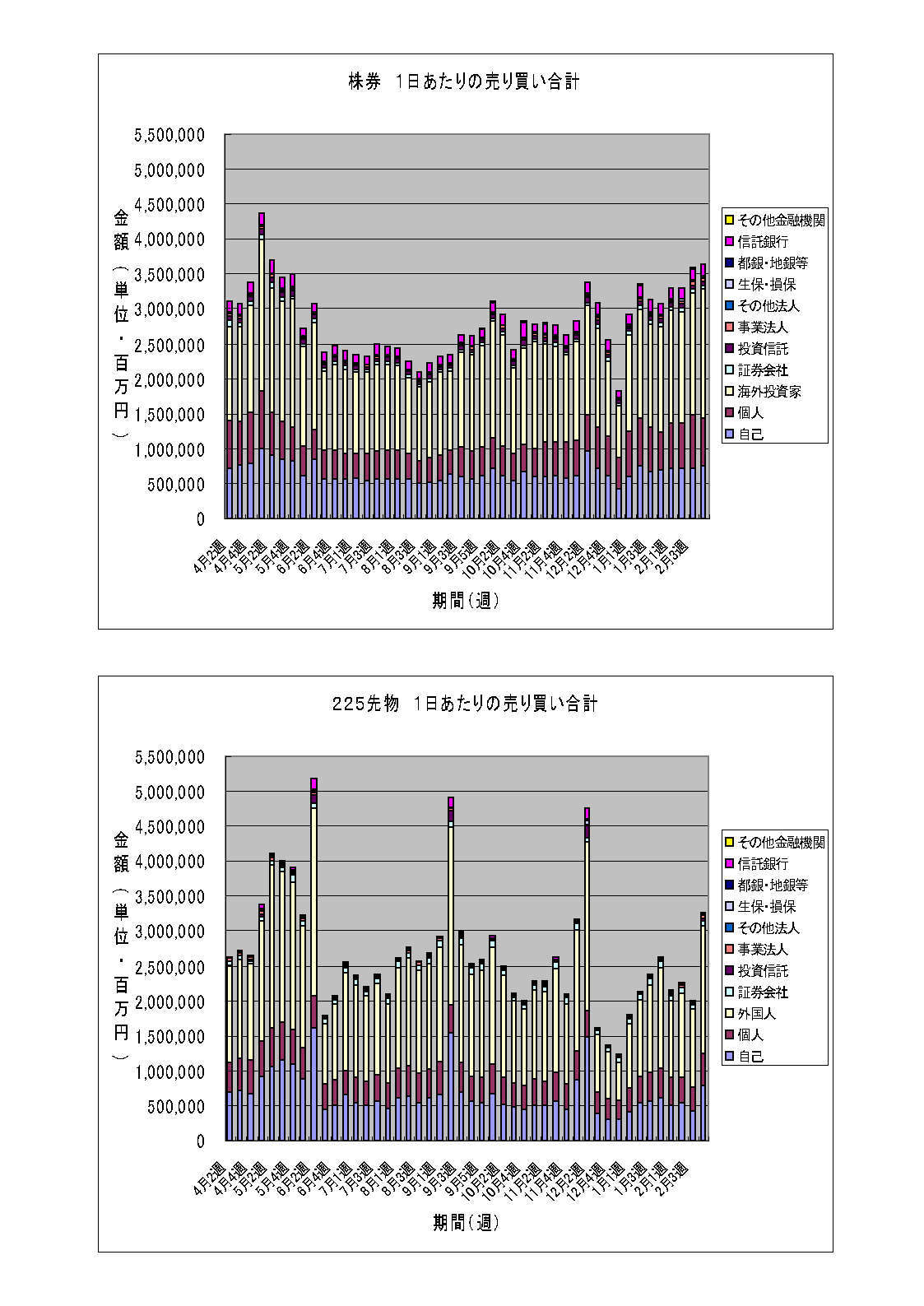 株券の売買金額は良い水準を維持しています。先物も一気に水準回復ですね。