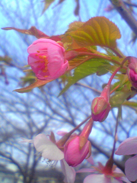 河津桜は、つぼみの時は濃いピンクのようですが、咲くとやや白っぽくなるんですね。