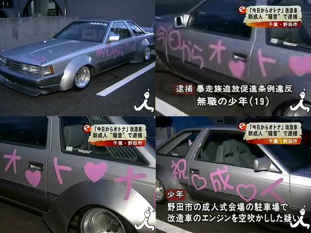 【成人式】「今日から大人」と書いた車で空ぶかし、