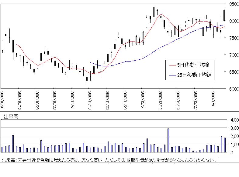 日足:7500付近に下値抵抗線あり?上昇トレンド中?+2