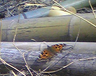 ヒオドシチョウでしょうか?暖かい光りに出てきたようです。一年に数回の出会いしかありません。竹の子もまだ見ていません。大高緑地2011.4.6