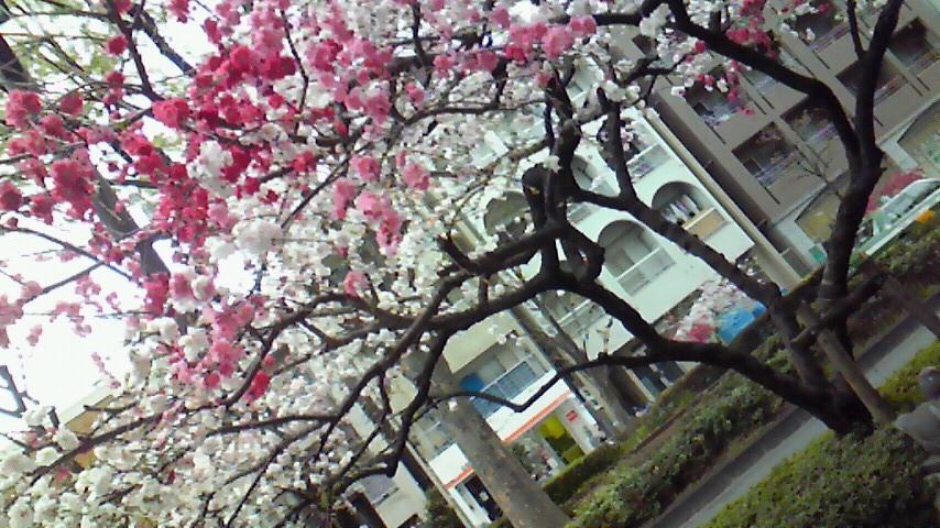 先日桃が咲いている通りを散歩した所、1本の木なのに、花の色が混じっている事に気がつきました!