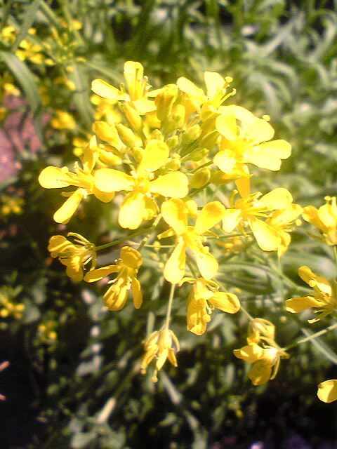 水菜の花 2011年04月14日 みずなの花です。食べるのも少しやめて、この時期置いておくと、花が咲いてきます。なばなと同じような花です。少し固いので、柔らかいうちに千切り、ゆでると美味しいです。