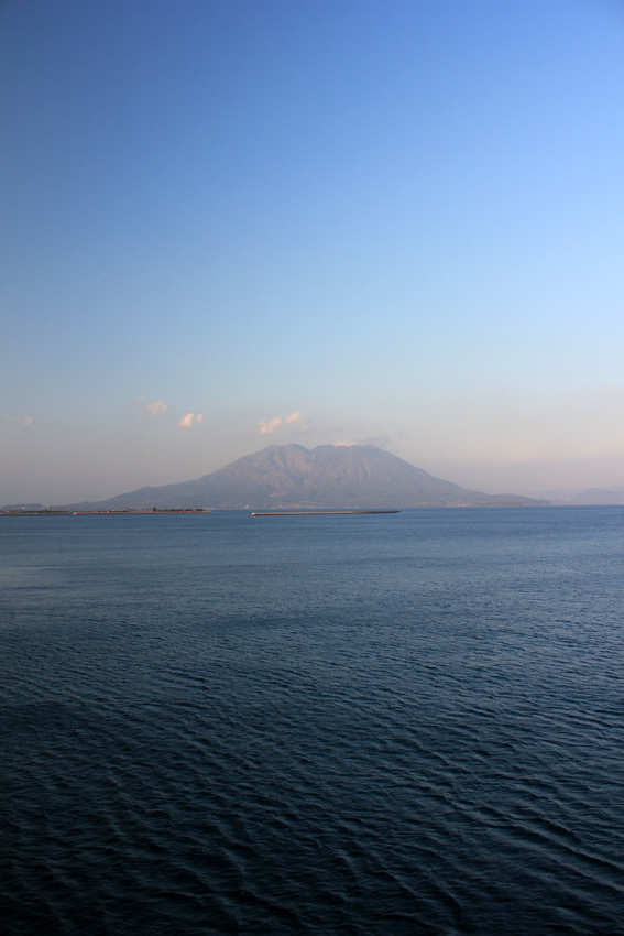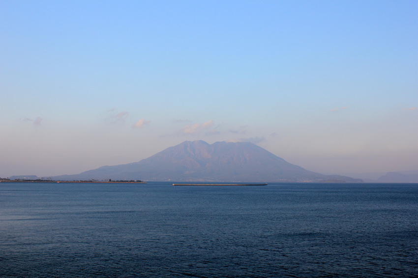 桜島の左手前に移ってるのが、散歩に行く港です。
