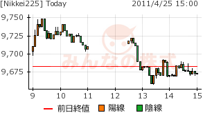 終値は金曜日とほぼ同値での陰線。9750円の上値確認となった。