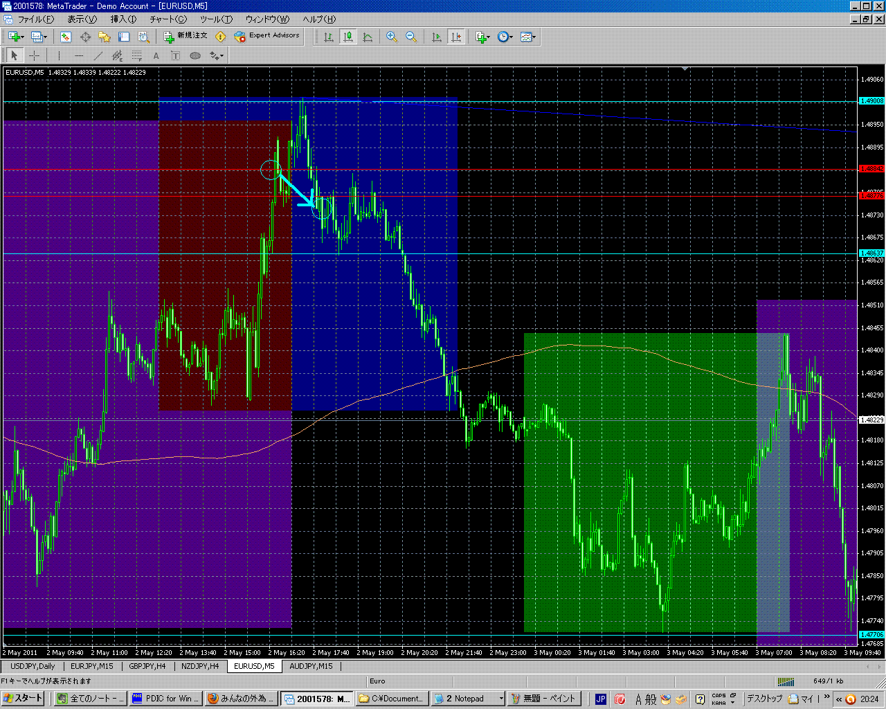 理由     : ユーロドル1.48820を節目と見ており、きれいなモミモミ状態だったため、ブレイクを狙ってトレード。