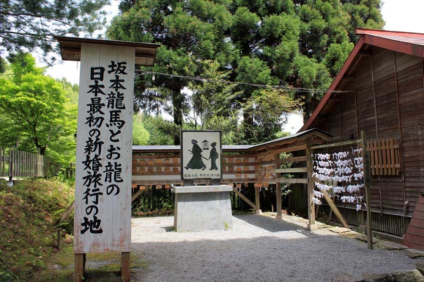 龍馬とお龍の新婚旅行の地の看板