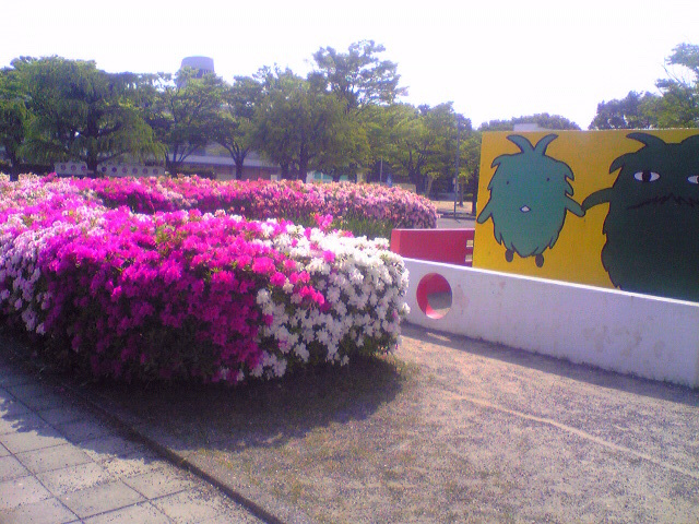大高緑地のゴーカート場のぞいて見れば、ツツジが満開。あっぱれです。ジャーマンアイリスもモリゾー、ピッコロと一緒に待っています。約4キロの半分はこのツツジで覆われ、ジョギングに最適の時期です。桜公園ではこれからです。