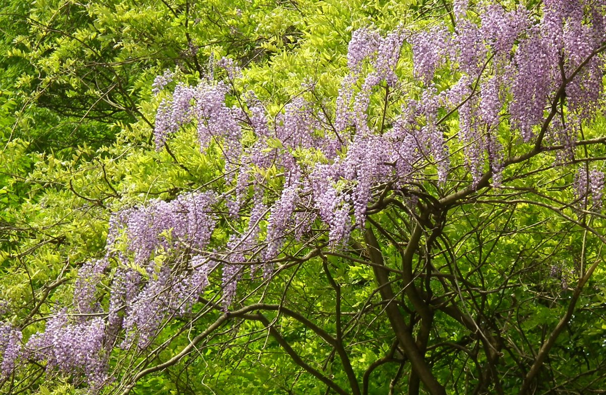 満開で花全体が見渡せ、さながらふじ色の絹織物を木にかけたようです^^