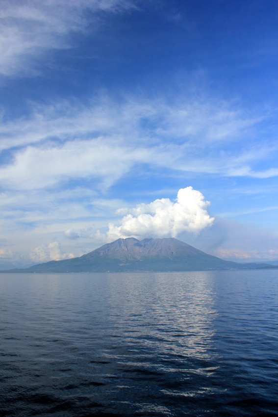 くっくり見えていた桜島も夕方近くになって、透明度が大分落ちてます。