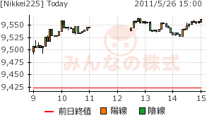 本日は不思議な動きのNK。平均のはずなのに、なぜか同価格の高値を繰り返した。引け値9562円+-5円で高値を記録したに留まる。
