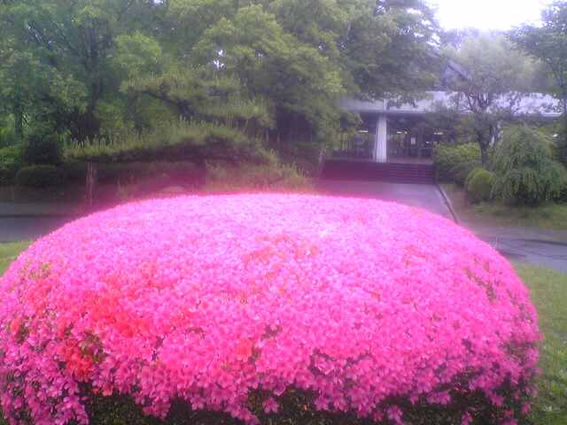 農業センターに大きなピンクのお饅頭が落ちていました?サツキツツジの見事な造形です。しばらく見入っていました。