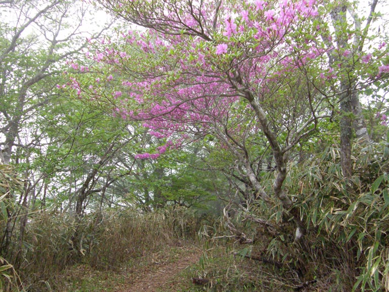 ミツバツツジが下の方では咲き終わっていましたが、山頂付近ではまだ咲いていました。