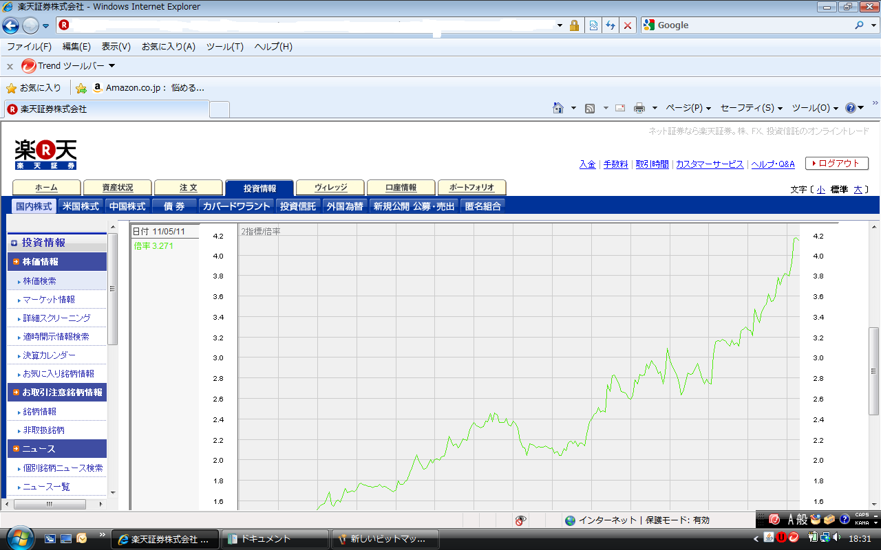 久しぶりに株価を見たらもう3500付近にいる(汗)。