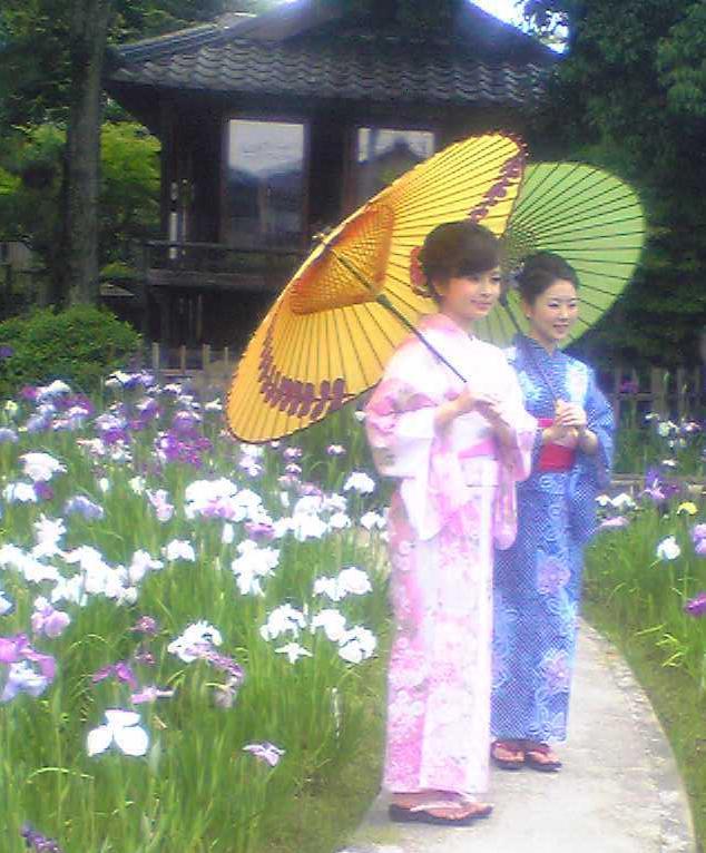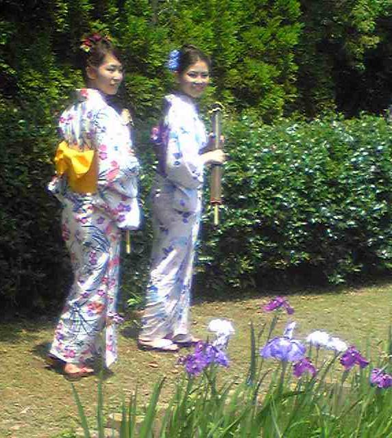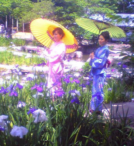 ハナショウブには洋服よりも和服の方が合いますね。