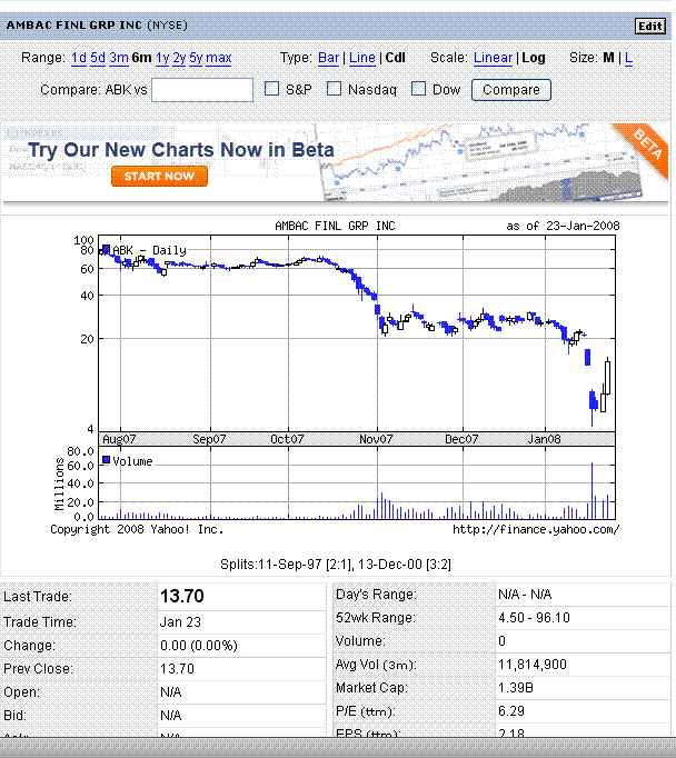 こんばんは。ソシエテの損失はすごいですね。トレーダーによる損失額としては過去最大みたいです。もっとも、サブプライム絡みの巨額損失の噂が昨日出ててソシエテの株価は下がっていたこともあり、マーケットとしては織り込み済みみたいですね。